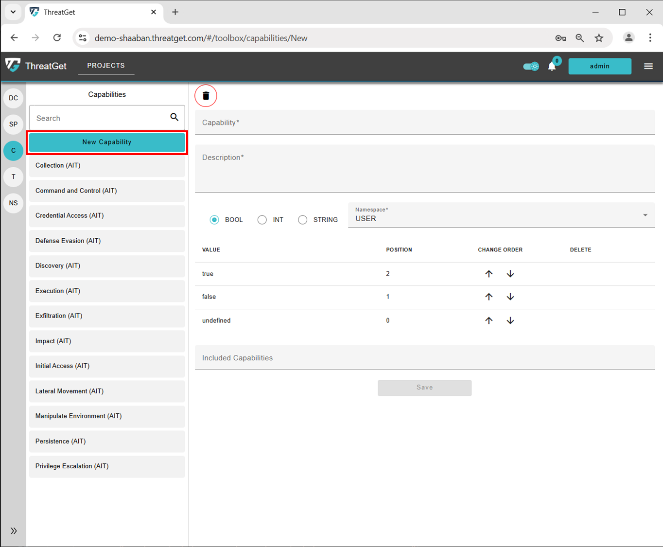 You can also cancel the creation of the new capability by clicking on the Trash Can on the top.