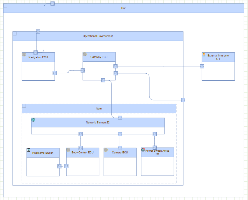 Express behavior (e.g., “measure temperature”, “control speed”, “detect obstacles”). Has a name and description. Can be assigned to physical or logical elements (all elements int the system model except connectors - e.g., sensors, control units).